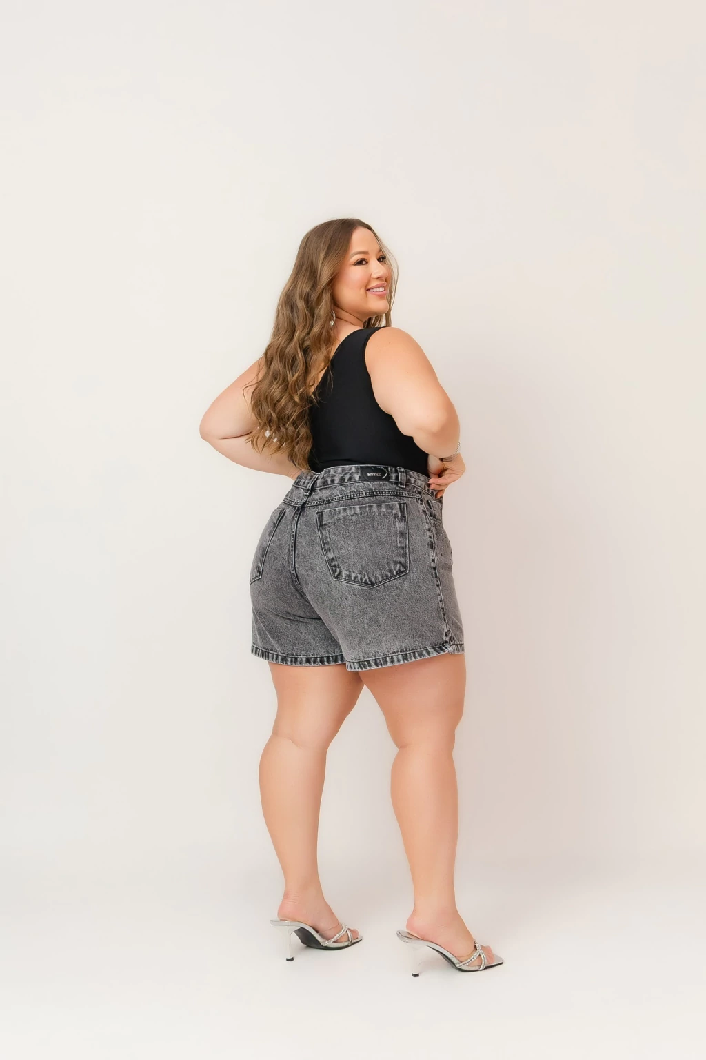 O short jeans Sannez Jeans é a peça que faltava para um visual cheio de atitude e glamour! Confeccionado em jeans 100% algodão, ele possui uma lavagem cinza marmorizada (acid wash) super moderna e cintura alta que valoriza o corpo com conforto. O charme fica por conta da barra dobrada e, principalmente, dos delicados strass pretos espalhados na região dos bolsos frontais, garantindo um brilho sutil e sofisticado. Perfeito para quem ama um look despojado com um toque especial! (Ref 5110435)
